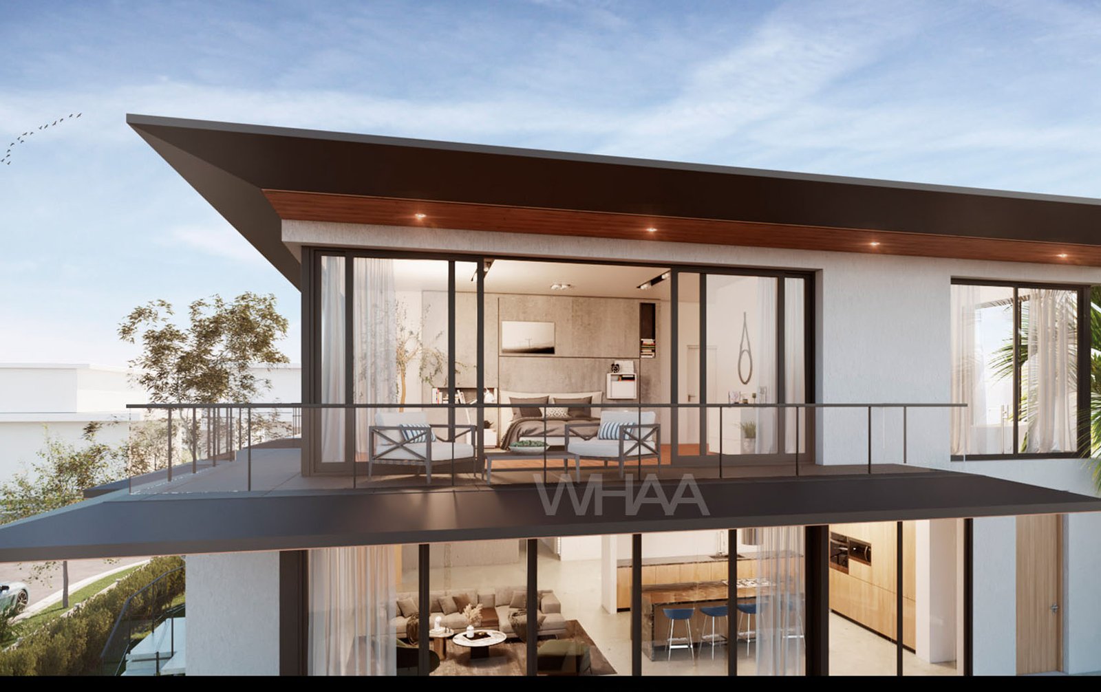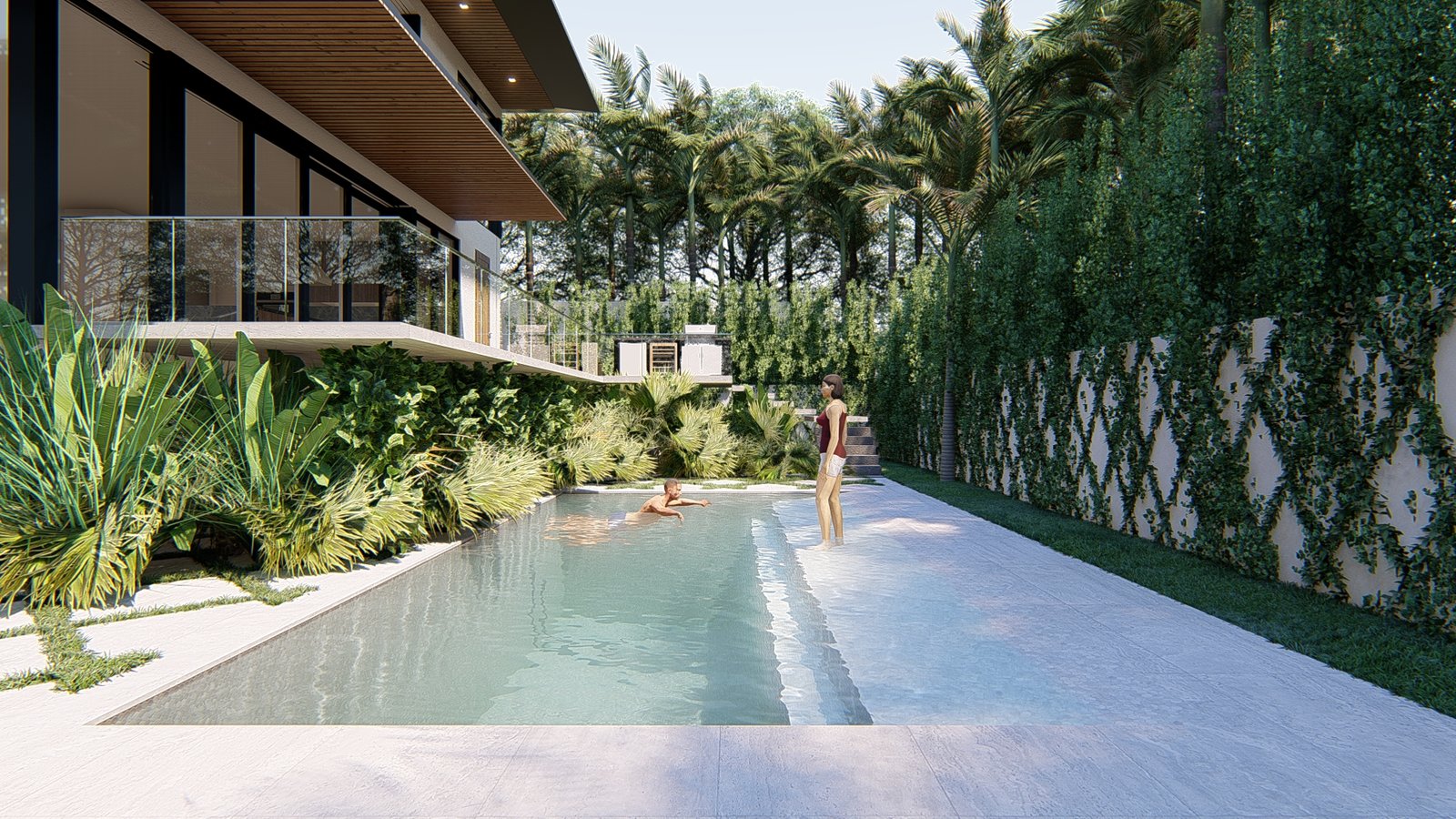 The architecture is modern, yes—but warm. We used materials that echo the textures of old Miami: coral rock, warm teak, oolite, and polished concrete that catches the sun like wet stone. The façade is a rhythm of planes—some solid, some louvered for airflow, some glass that disappears into pocketed frames. A cantilevered overhang shades the upper floor, balancing elegance with function in the relentless Florida sun.